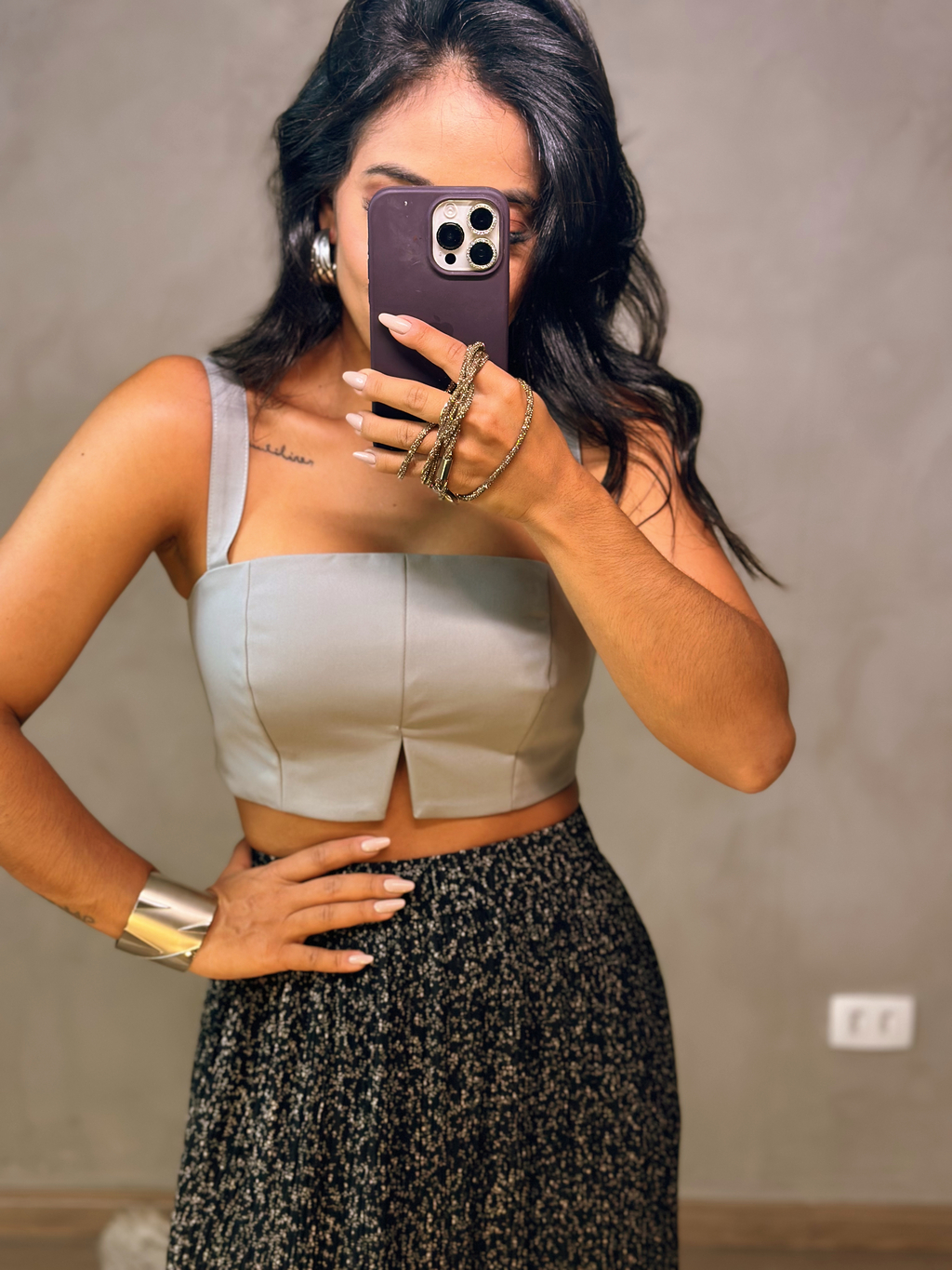 Transforme seu look com a elegância do Cropped Cotton Chic, uma peça de alfaiataria contemporânea que combina o toque estruturado do corte reto com a leveza e frescor do algodão. Ideal para mulheres que desejam sofisticação e personalidade em uma única peça. Seu design de alças largas e recorte estruturado valoriza o busto com charme e discrição.